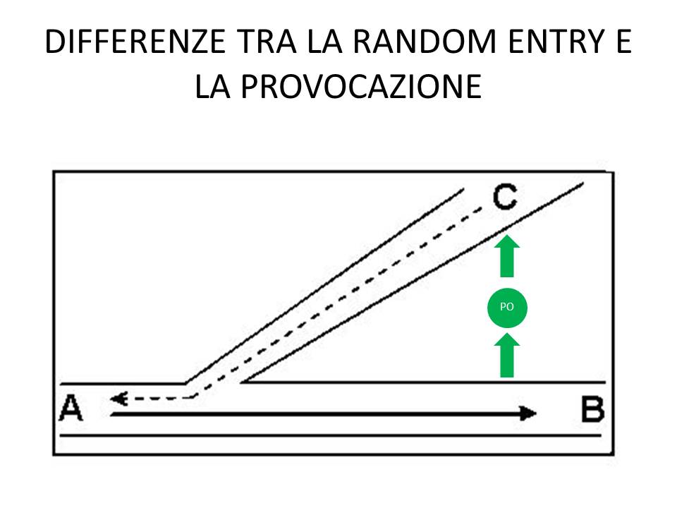Con la Random Entry (o “Entrata casuale” o “Ingresso casuale”), partendo dal focus A, generiamo nuove idee, C, saltando direttamente da B (che è la conseguenza logica che il pensiero verticale, il tradizionale e comune modo di pensare connette al focus A) a C, attraversando, rompendo, gli schemi o modelli che ci propone il pensiero verticale, il tradizionale e comune modo di pensare.